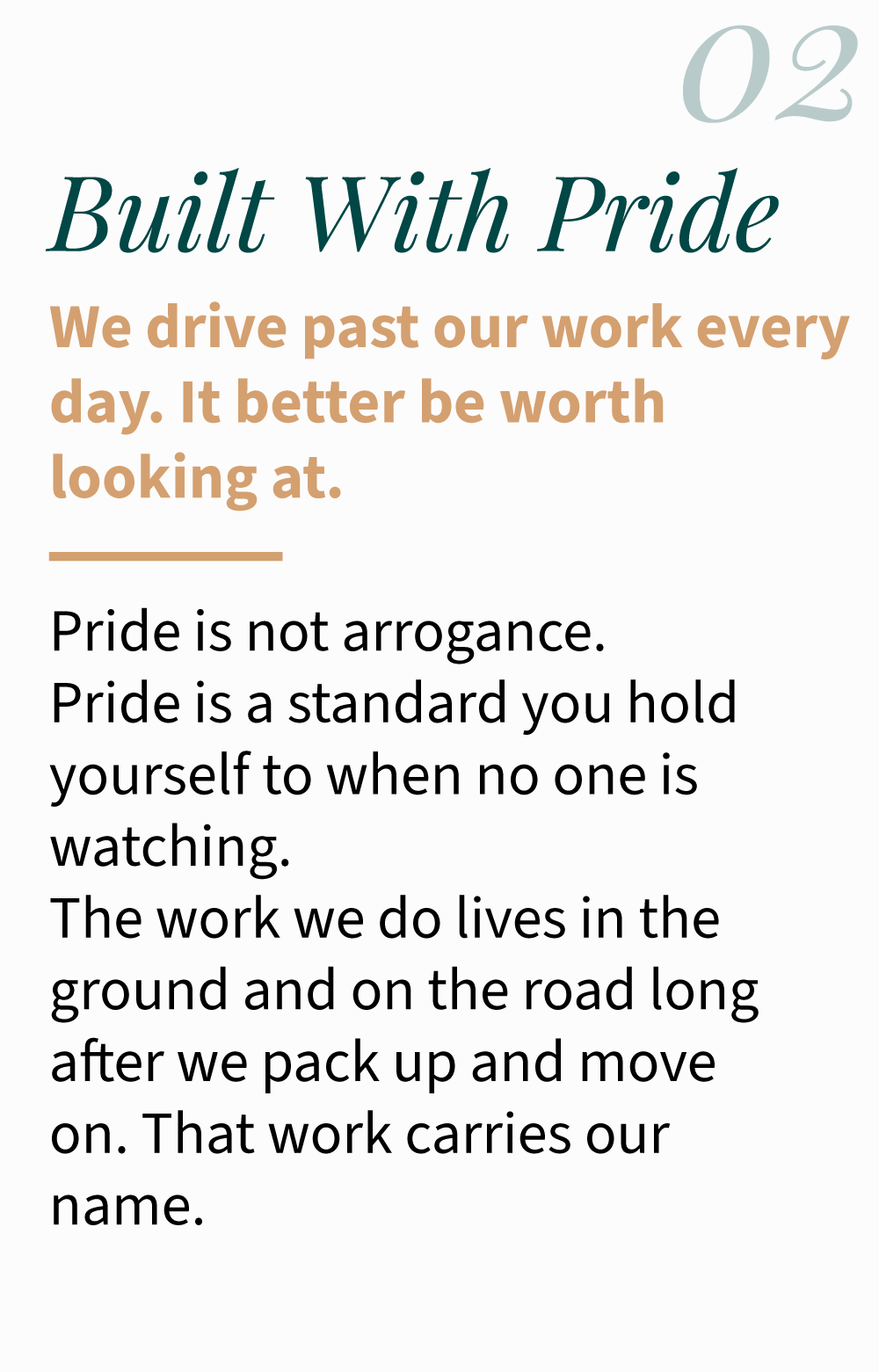 We exist to build people as much as we build projects. We do that by delivering honest, high-quality site work and paving to the communities we've called home since 1978.
